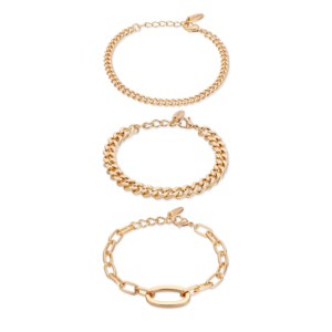 The Chain Game Bracelet Set features three distinct 18k gold-plated bracelets, offering a versatile and stylish layered look.