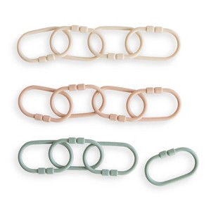 Keep toys within reach while engaging littles in a playful learning experience with our chain link rings. These durable, yet flexible plastic links can quickly attach toys to strollers and car seats, ensuring that favorite companions are always close by. Each set features three soft colors to help engage little ones and improve sorting skills. The minimal design and smooth, lightweight non-toxic material makes it easy for small hands to grasp and manipulate, enhancing fine motor skills.