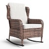 Outdoor Resin Wicker Rocking Chair w/Cushions, All-Weather Patio Rocker for Porch,Deck or Garden, 1-Piece Club Chair in Grey Wicker & Blue Cushions