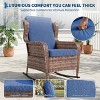 Outdoor Resin Wicker Rocking Chair w/Cushions, All-Weather Patio Rocker for Porch,Deck or Garden, 1-Piece Club Chair in Brown Wicker & Blue Cushions