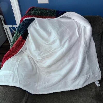 [This review was collected as part of a promotion.] This is a very festive blanket.I like it a lot.The colored side is almost like a shag texture.I really wish this side was a little bit softer.The reverse side is white and very fuzzy.And soft, I like that a lot.The colors are really vibrant and the blanket itself is a great size.I can see my family using this all winter long!