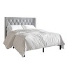 Elevate your bedroom with this elegantly crafted bed, built from durable solid wood and upholstered in plush 100% polyester velvet. The headboard features timeless diamond button tufting, a graceful wingback silhouette, and refined nailhead trim—making it a sophisticated focal point that complements any décor. Merging style with everyday practicality, this bed offers both elegance and functionality for modern living. Available in Twin, Full, Queen, and King sizes to fit any space, and offered in six stunning colors—Silver Grey, Light Grey, Light Blue, Black, Light Pink, and Navy Blue—to suit your personal style. A box spring or foundation is required for optimal support. Ships in one box with all hardware included for quick and easy assembly.
