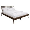 - The tall headboard with spindle detailing enhances the look with a touch of refined sophistication
