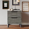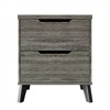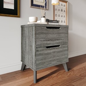 Add a touch of simplicity and style to your bedroom with this minimalist nightstand. Designed with clean lines and modern appeal, it features two spacious drawers equipped with pre-assembled metal slides for smooth and reliable use. The sleek cutout handles enhance its contemporary look while offering easy access to your essentials. Crafted from a blend of solid and engineered wood, and supported by four sturdy tapered legs, this piece promises durability and stability. Assembly is quick and straightforward with the included instructions. Available in Light Grey and Dark Grey finishes, this nightstand ships in one convenient box. Refresh your space with this functional and elegant bedside addition.