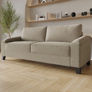 Upgrade your living area with our stylish 2.5-seater sofa, designed to deliver both modern elegance and everyday comfort. With its sleek silhouette and clean lines, this versatile piece effortlessly complements a variety of interior styles, offering a timeless appeal. The generously padded seat and supportive backrest provide a cozy and relaxing seating experience, perfect for unwinding at any time of day. Black-finished legs add a refined touch while ensuring strong and stable support. Upholstered in durable 100% linen fabric, this sofa is both low-maintenance and built to last. Its solid construction enhances overall stability, making it a reliable addition to your space. Ideal for smaller areas where you want to maximize seating without sacrificing style, it ships in one box and requires minimal assembly. Available in a selection of elegant colors—Beige, Dark Beige, Grey, Light Blue, and Blue—to suit your decor. Note: Some assembly components may be stored in hidden areas (e.g., under the cushions). Please check all compartments thoroughly before beginning assembly.