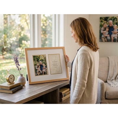 Frames will not come with a mat except select sizes 5x7 (matted to 3.5x5), 8x10 (matted to 5x7), 11x14 (matted to 8x10), and 16x20 (matted to 11x14). Frames will have different front, back, and hanging components based on the size ordered.