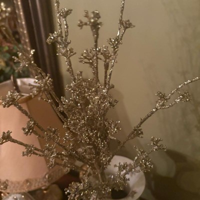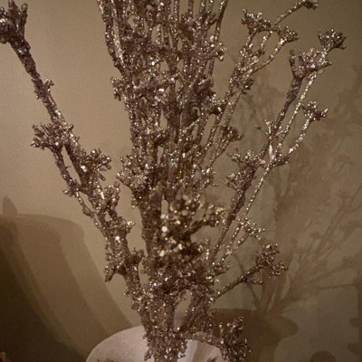 [This review was collected as part of a promotion.] This champagne gold stem is absolutely beautiful and so sparkly. It adds an elegant touch to any décor and catches the light perfectly, You can style it in a vase, but I used it in my Christmas tree instead. My tree is pink and gold, and I wanted to add more gold without using extra ornaments-this stem was the perfect solution, It helped make my tree look fuller and added just the right amount of shimmer and sparkle, I'm really happy with how it turned out and would definitely recommend it for holiday decorating.