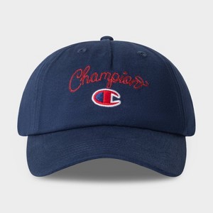 An updated take on a classic. The CHAMPION Jersey Script Adjustable Cap features the CHAMPION script logo, which adds a bit of visual intrigue to this classic cap. A 5-panel relaxed fit with a logo lever buckle create a feel-good fit. Stripe sweatband keeps you cool and dry at the beach, on the court, or at the gym.