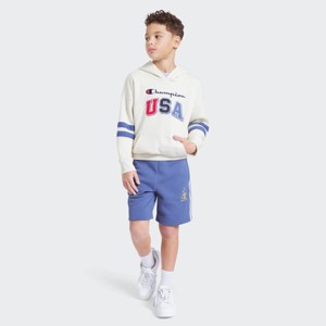 Champion® celebrates the 2026 Winter Olympics with a limited-edition collection for kids. A key style from this must-have capsule, the Champion® Boys' Olympics Fleece Shorts is just what he needs for workouts and warm-ups. They're made from plush cotton-blend fleece and detailed with two rows of tape along the sides. Plus, these boys' shorts feature side seam pockets and an elastic waistband for all-day comfort. Pair them with the Champion® Boys' Olympics Fleece Hoodie to achieve a matching look.