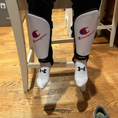 [This review was collected as part of a promotion.] My son has been using these Champion Defender Shin Guards. They're lightweight but still give great protection — he's had a few hard kicks on the shin and thing! The straps are easy to adjust, making it quick to put on and take off. The white color looks clean and sporty, and they've held up well even after multiple practices. Overall, great quality for the price — durable, comfortable, and perfect for active kids who love soccer!