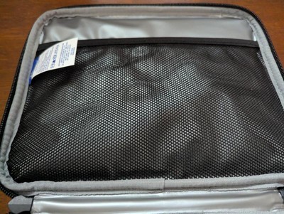 The Champion Estate Lunch box in the color black has a built in hard shell case, easy clean lining, a pocket inside and out. Very durable and a great size for traveling or school lunch. Easy to carry.