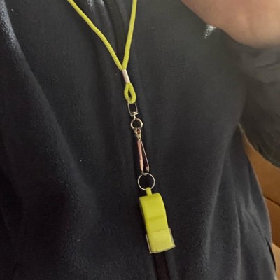 [This review was collected as part of a promotion.] This champion whistle gets the job done!y daughter refs soccer games, and loves that this one is it a fun neon color. Much more vibrant than the standard black. The whistle works that is it is intended. The cord can be attached and be worn around your neck or you can unattached the cord if you wish. This is a standard size of most whistles. Loud enough to get the attention of players to stop during a game when there is a foul.