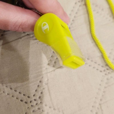 [This review was collected as part of a promotion.] Champion Game Time Whistle in Yellow is a great addition to our outdoor sporting equipment collection. Love how bright the yellow is, because I'll be able to find it anywhere--the garage, my purse. The whistle is very clear and loud, and I love the protection of the lip guard. I like the fact that the whistle is plastic, because I don't have to worry about the kids burning themselves while using it.