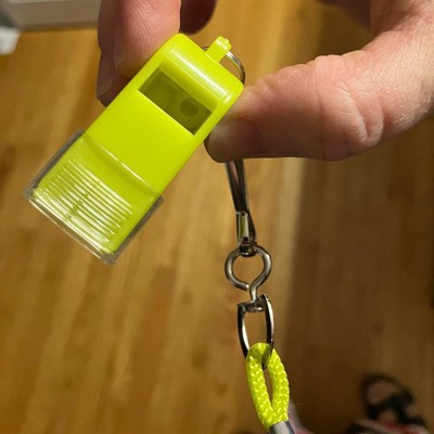 [This review was collected as part of a promotion.] This is a great little whistle for sports and staying safe when you’re out by yourself. It’s got a piercing and loud whistle and it’s very easy to blow. The whistle blower is protected by a clear rubbery plastic piece that takes a while to take off and put back on. The lanyard hook is also very stiff and it was difficult to attach the whistle. There’s no way to adjust the length of the lanyard though, and it’s pretty long. I may replace that part with something adjustable and more festive. Overall I like the product, everything feels well made and not cheap or disposable.