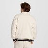 [This review was collected as part of a promotion.] My husband is 5’11” and 240 pounds. He is wearing a size XL and this is his typical size. The fit is relaxed, but not too baggy. I do like the vintage look with the collar and banding details. The quality is really nice and it is very soft on the outside and inside lining. Overall, fun and fashionable look. It definitely gives off a younger look for college and 20-30’s men. I received an incentive to write this review.