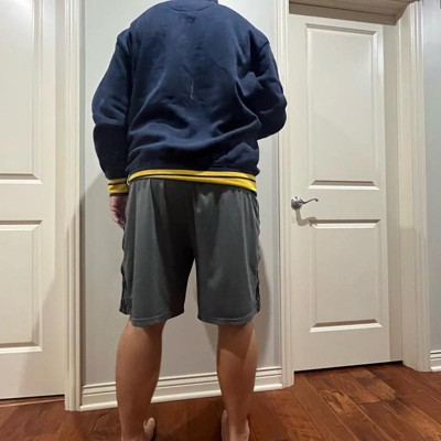 [This review was collected as part of a promotion.] My husband is 5 foot 9 inches tall, weighs approximately 195 lbs, and tried on the size large in this physical education mock neck sweatshirt from Champion. He really likes the design a lot, and really loves the navy blue and yellow coloring. It is very comfortable and it fits him very well. We’d say it fits true to size. You can tell it is high quality and very well made! I received an incentive to write this review.