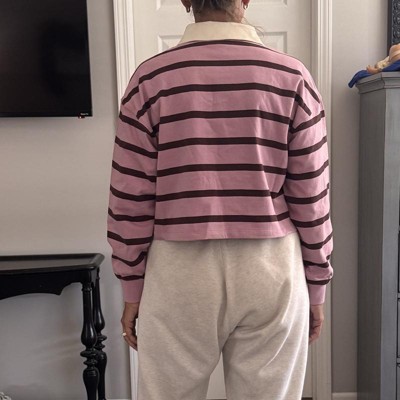 Champion Women's Long Sleeve Rugby Shirt - Pink Striped 3X