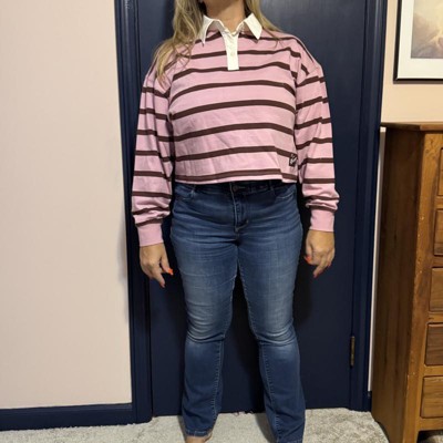 • Loose-fitting women's cropped rugby shirt, 20-inch body length