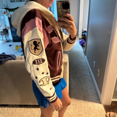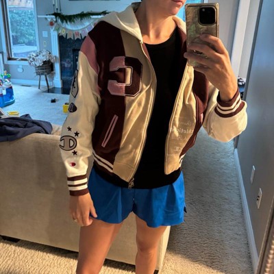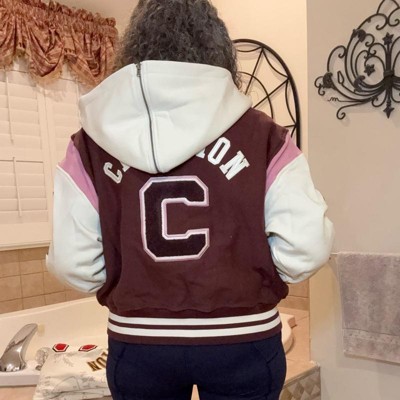 [This review was collected as part of a promotion.] The pictures online made me think this was a letter jacket. It definitely gives off those vibes, but it is in sweatshirt form. I like the juxtaposition of the Cream, brown, and pink. It is a nice color palette. The pockets in the front are functional. The hood is larger than I would've expected. And it is unique and that has a zipper down the center of about half of the hood. This allows the hood to lay on the back of the sweatshirt like a traditional letter jacket would. In the photos, my daughter does not have the hood unzipped. I think it is a better look if you unzip the hood. I received an incentive to write this review.