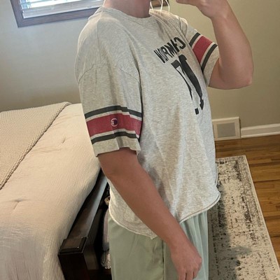 [This review was collected as part of a promotion.] This is the Champion women’s short sleeve pullover t-shirt I got this in the heather gray in a S. I am 115 pounds 5’3”, I normally wear an XS so this was plenty big but it is also an oversized style so it is supposed to be big. I really liked the shirt, it is a super soft t-shirt material making it so comfortable. I love the sleeves as I am most comfortable in a longer sleeve and the unfinished hem on the shirt is really cute too. I received an incentive to write this review.