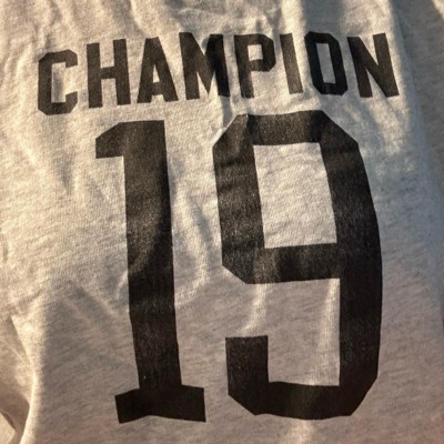 • “Champion 19” graphic at the chest, printed sleeve stripes