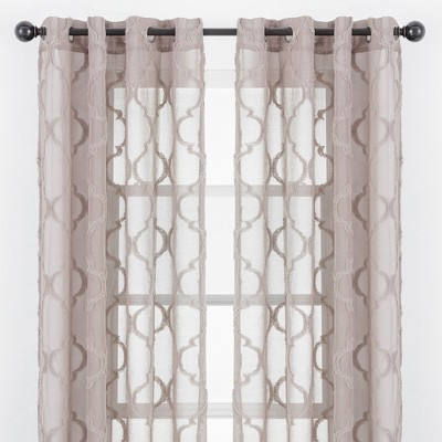 Add a touch of elegance to your home with our Moroccan Textured Sheer Grommet Window Curtain Panel Pair. The soft, sheer curtains are perfect for layering or creating privacy, while the textured design adds a bold and sophisticated look to any room. The curtains have an easy-to-use grommet hanging style that makes them a breeze to install. Enjoy the gentle ambient glow that these curtains create and elevate the style of your space.