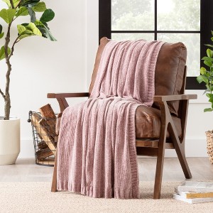 Chanasya Chenille Knit Subtle Shimmer Textured Decorative Throw Blanket - 1 of 4