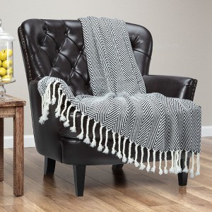 Chanasya Chevron Lightweight Acrylic Throw Blanket With Tassels - 1 of 4