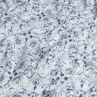 • Ceramic Blue Printed Pattern on Each Flat Sheet, Fitted Sheet, and Pillow Case Cover