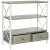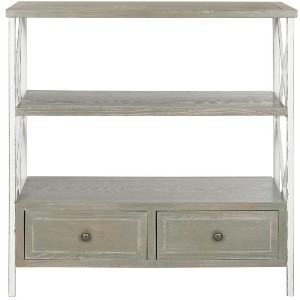 Romantics will fall for the graceful charm of this Chandra Console. Brimming with a vintage ambiance, Chandra is crafted with distressed finishes on its white smoke" x frame and ash grey shelves and drawers. Feminine and functional, Chandra is ideal for coastal or country interiors.