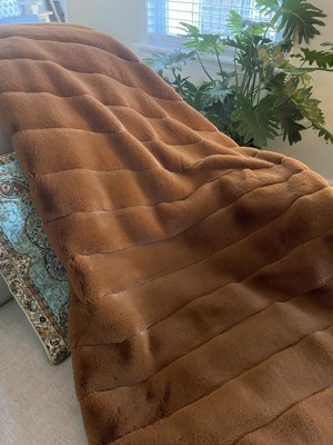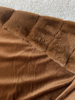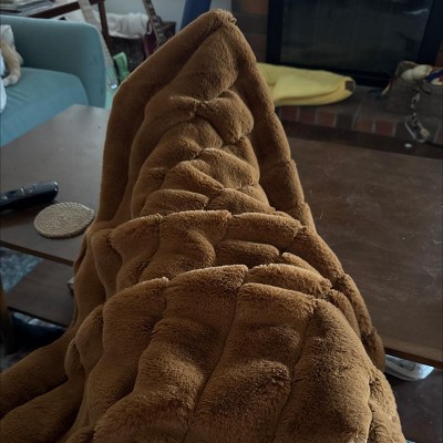 I am absolutely in love with this faux fur blanket. It is the coziest and softest blanket I have ever owned. Once I wrap up in it, I never want to leave! This blanket has become a fast family favorite not only for us humans but also for our Yorkies. This blanket's rich dark brown color goes nicely with almost any color scheme and adds a touch of elegance to any room in your home. The ruched detail on the faux fur side of the blanket lends texture to the blanket and the backside has a velvet-like feel. This blanket definitely looks like it should have cost a lot more than it did.