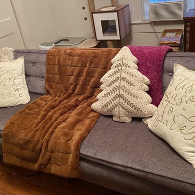 Add a touch of coziness to your living room with this Channel Faux-Fur Throw Blanket from Threshold™. Made from 100% recycled polyester fabric, this faux-fur throw blanket is sure to bring extra warmth to your leisurely pursuits. This throw blanket easily coordinates with a range of decor styles.