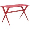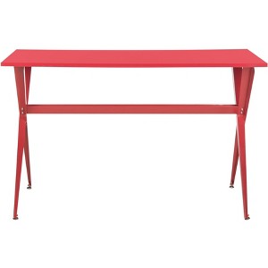 Introducing the Chapman Desk in a striking red color that adds a bold statement to any space. Designed with both style and functionality in mind, this desk features a sleek surface crafted from durable MDF, perfectly complemented by sturdy iron legs. Its minimalist design makes it an ideal fit for modern interiors, whether you are setting up a home office or creating a dedicated workspace. The ample tabletop provides the perfect area for your computers, books, and creative projects. Enhance your productivity and express your style with the Chapman Desk, where form meets function effortlessly.