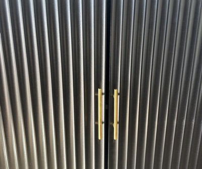 Characteristic Wooden Sideboard, Storage Cabinet With Metal Handles For Hallway, Entrance, Living Room, Bedroom, Black -ModernLuxe