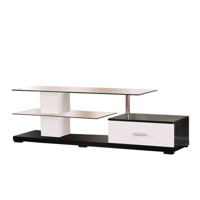 - Spacious Storage - Features two roomy cabinets with fluted glass doors and an open shelf, offering ample storage space for electronics, books, and decorative items.