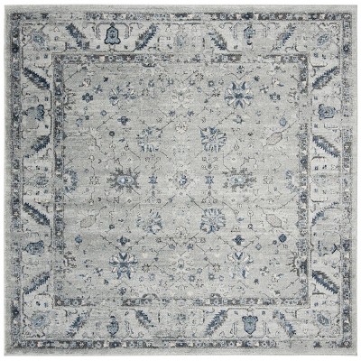 Introducing our exquisite square area rug, a timeless addition to any home seeking a blend of traditional elegance and contemporary hues. This 6'-7"x6'-7" masterpiece boasts a charming grey and dark grey color palette that adds a subdued yet sophisticated touch to any room.