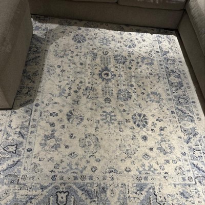 After searching high and low for a rug that matched my needs, I finally found it! The rug has beautiful hints of light, blue, dark blue and navy as well as some gray. It is a pretty design and has more of a gray SH backing so you can’t tell that it’s super dirty. I have a one year-old son, and I wanted him to be able to have some thing to play on but not feel nervous about it getting ruined. I feel like this rug that our need.