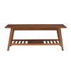 Elevate your living space with the Charlotte Mid-Century Modern Coffee Table, a perfect blend of style and functionality. Crafted with durable solid wood and birch veneer, this sleek piece boasts a warm walnut finish that enhances its timeless appeal. The smooth, spacious tabletop provides ample room for your favorite décor, drinks, or daily essentials, while the slatted lower shelf offers convenient storage for books, magazines, or decorative accents. Its angled, rounded legs lend a touch of retro charm, making it a stylish centerpiece for any living room or sitting area.