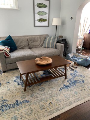 We've had this table - and matching end tables - for several months and they are terrible. The laminate looks and feels like plastic. It is also peeling off of one end table and has developed random chips/holes on the coffee table. Assembly was difficult. Using very little pressure, the screws quickly stripped the pieces they were supposed to go into, and caused cracks. I can't believe Target is charging so much for such crap. PLEASE DON'T WASTE YOUR MONEY.