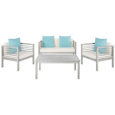 Chaston 4 Piece Living Set - Indoor/Outdoor - PAT7044 - Grey/Beige + Solid Pillow - Safavieh