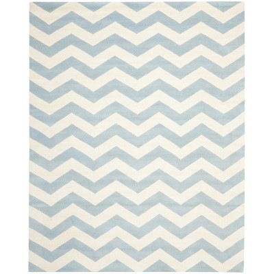 The rug's serene blue and ivory color palette evokes a sense of calm and sophistication, making it a versatile addition to any decor. The design features a distinctive pattern with a lattice of crisp ivory lines set against a soft blue backdrop, lending a classic yet contemporary appeal to your floors.