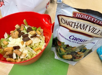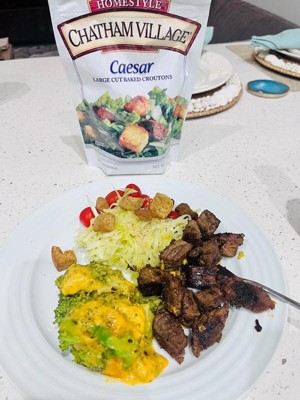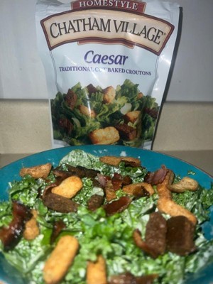 [This review was collected as part of a promotion.] Chatham Village Caesar style croutons next your salad from bunny food to next level deliciousness. I love salad to begin with but I am 100% a croutons on salad person. The extra crispy crunch just really adds to a salad in a way that just veggies doesn't. These croutons are just the right bite size and stay crunchy even in a large bowl of salad. Definitely recommend giving them a try.