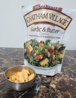 [This review was collected as part of a promotion.] Chatham Village Garlic & Butter Croutons offer a simple yet flavorful addition to salads and soups. The combination of garlic and butter adds a tasty richness to each crunchy bite. The croutons maintain a good balance, not overpowering the dish but complementing it nicely. While there might be more adventurous crouton flavors available, these classic garlic and butter croutons are a reliable choice for enhancing your favorite dishes with a subtle savory twist.