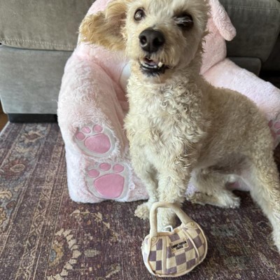 [This review was collected as part of a promotion.] This is the cutest dog toy I’ve ever found! We’ve used Haute Diggity Dog toys for years and they hold up like no other toys I’ve found. My dog doesn’t shred toys, but he likes to play fetch and tug-o-war with them. This little Chewy Vuiton bag toy has all the favorite features. It’s soft, it has the crinkle paper inside and fluff plus a great squeaker. My dog got super excited about this toy and likes to carry it in his mouth. I just love the design and color combo. We have the small size and it’s perfect for my 15 lb poodle. I received an incentive to write this review.