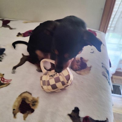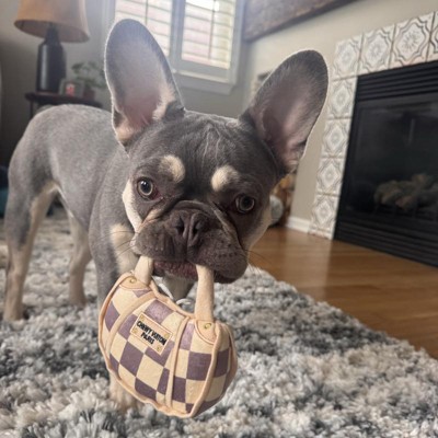 For casual fashion à la mutt, we offer the Chewy Vuiton Handbag toy! Your dog will feel absolutely furbulous wherever they go with this classic checkered handbag in their jaws. And this toy squeaks as good as it looks thanks to the inner squeaker hidden inside the plush, luxurious exterior!