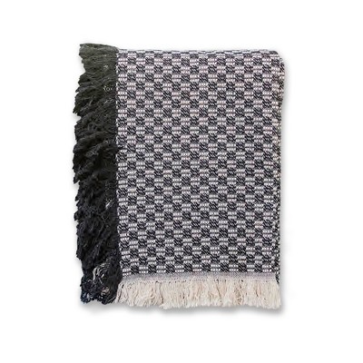 • Embrace coziness with our woven fringe throw, measuring 46x67 inches.