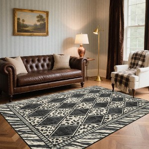 Checkered Leopard Pattern Area Rug, Soft Low-Pile Non-Slip Large Indoor Rug - Machine Washable Carpet for Living Room, Bedroom, Dining Room, Entryway