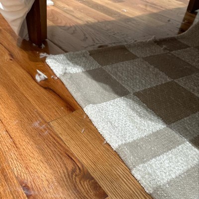 A: Hi LLF - Thank you for reaching out to us with your query about the 5'x7' Checkered Woven Flatweave Area Rug White - Threshold. The backing of the Rug is made of cotton but designed to ensure the Rug does not slip. I hope this information was helpful. Happy Shopping! - Josh