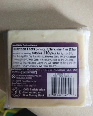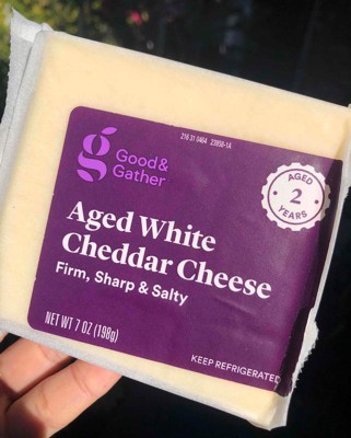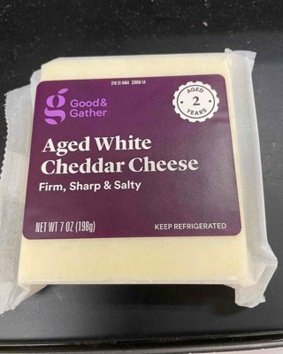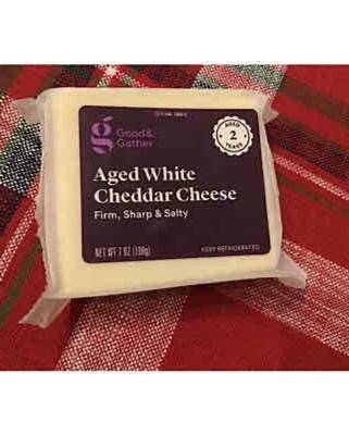 [This review was collected as part of a promotion.] I purchased this Good and Gather aged white cheddar cheese in a 7 ounce block. This cheese is perfect for slicing and putting onto crackers or you can shred it as I did and sprinkled on top of soups or salads. This cheese has a very delicious flavor. I received an incentive to write this review.