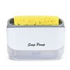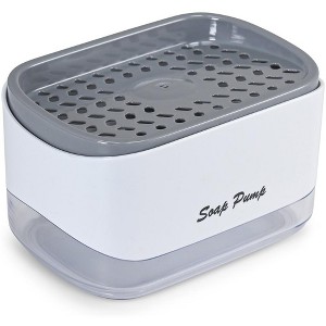 2-in-1 Soap Dispenser: This soap dispenser with sponge holder is the perfect choice for anyone who wants to make dishwashing faster and easier. It combines a soap dispenser and dish sponge holder that automatically dispenses soap whenever you press down Durable And Lightweight: Our kitchen soap caddy is made using sturdy yet lightweight plastic to make sure it can handle daily use. Thanks to the lightweight you can easily move it around yet won’t slide or skid around once placed down for convenient cleaning Cleverly Designed: The sponge and soap holder for kitchen sink uses a drain tray that collects water from the sponge while preventing it from mixing with the soap. It’s designed to save you both time and effort to make washing dishes faster while keeping counters clean Save Time and Soap: Our sponge soap dispenser is designed to dispense the perfect amount of soap every time whenever you press down the sponge to help reduce soap waste and speed up cleaning. It's suitable for use with most types of liquid soaps Unique Gift Idea: Besides being a practical and functional addition to your kitchen sink, our dishwashing soap dispenser and sponge holder also makes a thoughtful gift for friends and family. It makes the perfect gift for Housewarming, Birthdays, Christmas, Anniversaries, and more
